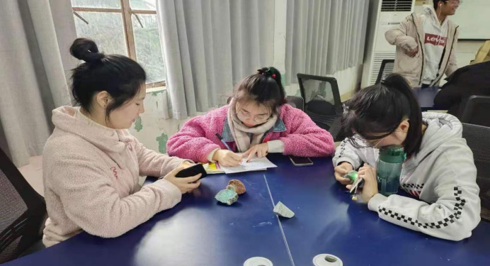 比赛的时间是在一小时内,分辨出各种玉料的品种和产地,来自珠宝系的20名学生,组合成四个小组,正式进入决赛环节。评委是宝石石鉴定专业老师蒋子骞担任。规则是在规定时间内将答案记录下来,并由评委打分评选出一、二、三等奖。本次玉石鉴赏大赛主要是对于学生们宝玉石鉴定、钻石鉴定与分级等课程知识的掌握及强化训练和考察,提高学生参与兴趣和比赛的吸引力;让学生们在模拟的过程中真实地体会一次鉴赏。