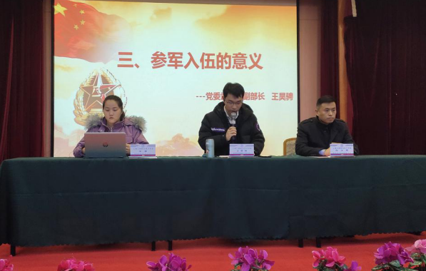 王昊骋向同学们讲解了参军入伍的意义,参军是一次难得的人生机遇,能够培养人的坚强意志和爱国精神,丰富人生阅历,提高自己的综合素质。